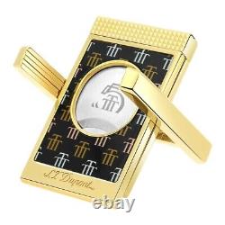Dupont Trinidad présente une finition dorée et un corps laqué noir, avec le logo Trinidad et le numéro '55', commémorant l'anniversaire célébré cette année par les cigares Trinidad. Le coupe-cigare est entièrement emballé avec la garantie de deux ans de S.